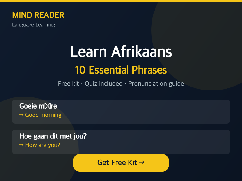 Master practical Afrikaans in minutes, not months. Start speaking with confidence today.