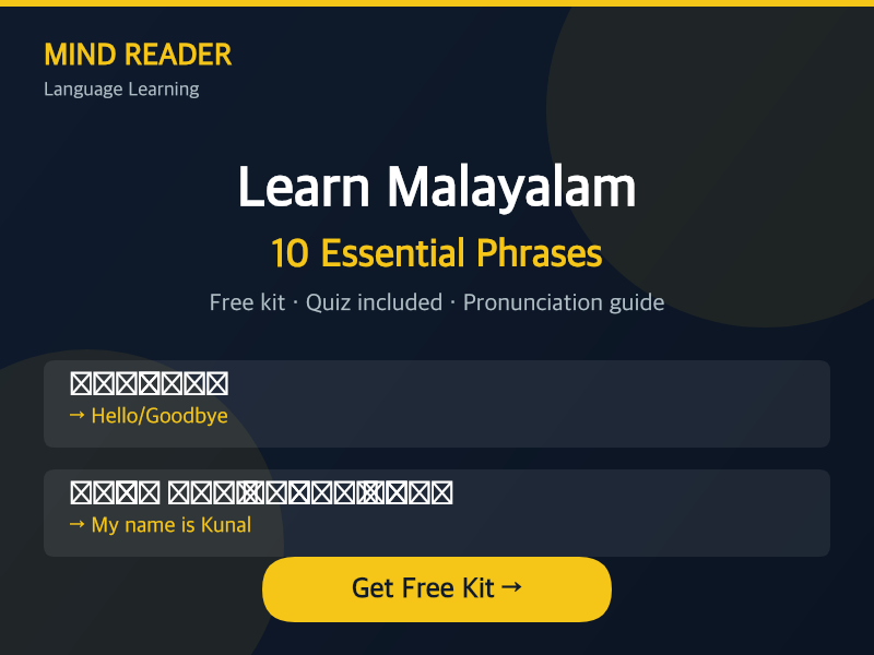 - ✓12 high-frequency phrases you'll actually use when traveling in Kerala or talking with Malayalam speakers